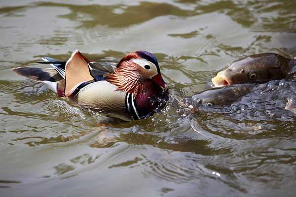 (VTC News) - Con cá đứng im một chỗ cách đàn vịt một đoạn, khi mà một con vịt con tách ra thì nó lập tức tiến đến đớp gọn con mồi.