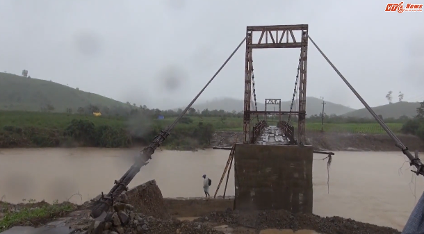 Do mưa lớn kéo dài nhiều ngày nên lượng nước ở huyện Krông Bông (Đắk Lắk) dâng cao, khiến mố cầu treo buôn Khóa bị sập hoàn toàn.