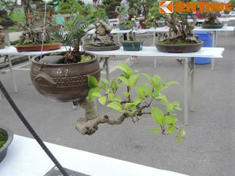 | Nhiều cây cảnh có thế độc lạ về cách mọc, về tạo hình... khiến người xem không khỏi ngạc nhiên. Trong ảnh là cây bonsai có rễ mọc từ dưới đáy chậu đi lên. Nó được tạo dáng trên thanh sắt uốn hình nửa trái tim rất độc đáo. |