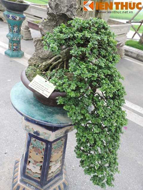 | Là một trong những cây cảnh có tạo hình lạ, cây có tán cây rủ xuống mặt đất rất đẹp này là cây bonsai Sam Hương thác đổ. |