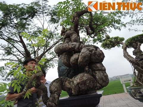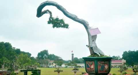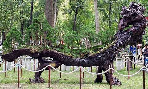 | Tác phẩm "Thiên long lạc cảnh" dài gần 10m của nghệ nhân Đỗ Duy Đạo (tỉnh Lâm Đồng). Chậu cây "Thiên Long lạc cảnh" được thiết kế hoàn toàn bằng thân gỗ sao nguyên bản hình đầu rồng, phía trên là hàng chục cây tùng trồng trải dài đẹp mắt. |