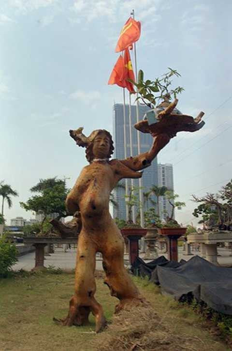 | Tác phẩm "Nữ thần tự do" của nghệ nhân Nguyễn Khắc Niên được giới mê cây cảnh khen ngợi về cách tạo hình độc đáo cũng như cách chăm sóc đặc biệt đảm bảo cây vẫn sinh trường và phát triển bình thường. |