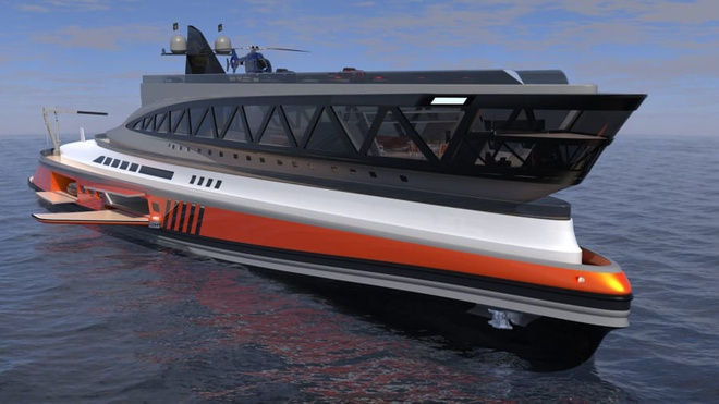 T Bên trong siêu du thuyền mang phong cách hiện đại, sang trọng với không gian rộng lớn. Thiết kế cửa sổ kính "hàm cá mập" giúp du khách có thể ngắm nhìn phong cảnh biển bên ngoài. (Ảnh: Lazzarini Design Studio)