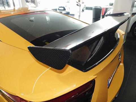 | Khả năng khí động học của chiếc xe cũng được cải thiện mạnh mẽ nhờ có các cánh khuếch tán nhỏ bằng sợi carbon trên cản trước và một cánh đuôi cực lớn, cũng được làm bằng sợi carbon ở phía sau xe. |