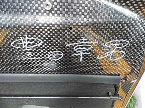 | Ngoài ra, ở bên dưới nắp ca-pô bằng sợi carbon, người ta còn có thể tìm thêm được một lưu bút khác của ông Toyota bằng bút trắng. |