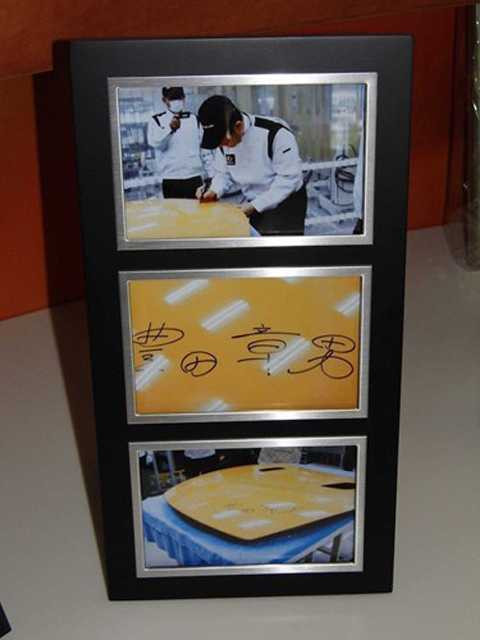 | Lưu bút của ông Toyoda nằm trên nắp ca-pô của chiếc xe sau đó được sơn bóng lên để gìn giữ với thời gian. |