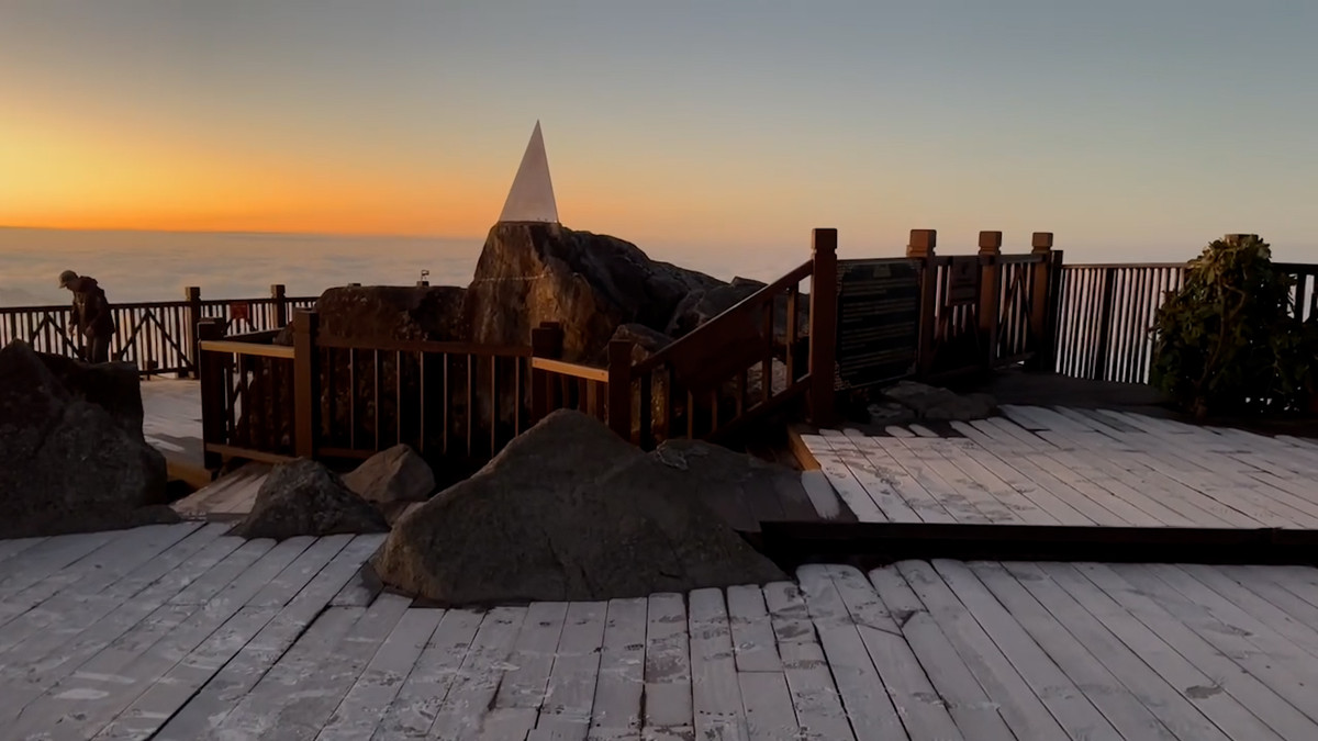 Sáng 23/11, do ảnh hưởng của gió Đông Bắc, trên đỉnh Fansipan, Lào Cai xuất hiện sương muối đầu tiên trong năm, phủ một băng mỏng trên các lối đi.