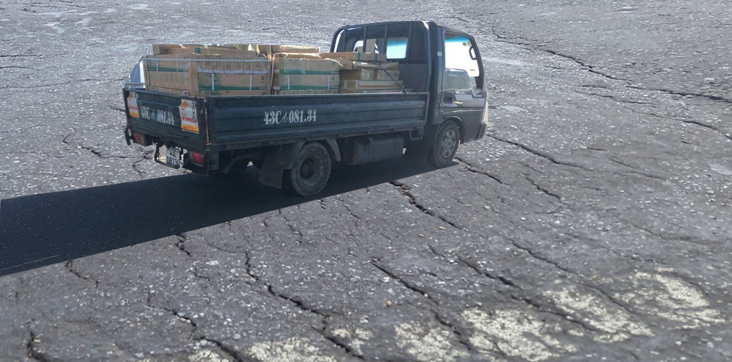 Sau nhiều lần sửa chữa hư hỏng, các làn đường đã có sự phân màu rõ rệt.