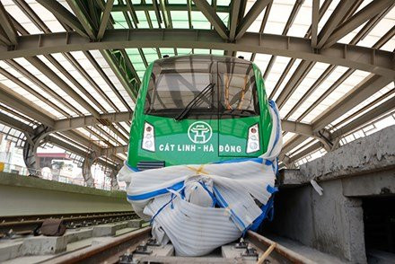 Đoàn tàu Cát Linh – Hà Đông đã được đặt vào đúng vị trí tại ga Văn Khê – một trong 12 ga nằm trên tuyến.