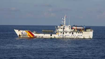 | Tàu Kiểm ngư 772 làm nhiệm vụ tại vùng biển DK Phúc Tần sáng ngày 26/4/2014. |