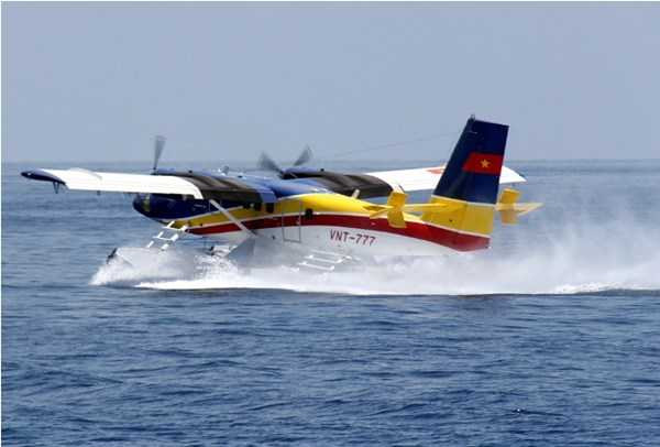 Chiếc thủy phi cơ DHC-6 mang số hiệu VNT-777 của Hải quân VN đã bay ra đảo Trường Sa, để hoàn thành chuyến bay huấn luyện cuối cùng trên biển. (Theo TPO)