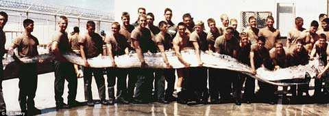 Năm 1996, Hải quân Seals kéo lên bờ một con cá oarfish dài 8 mét ngoài khơi bờ biển San Diego, California