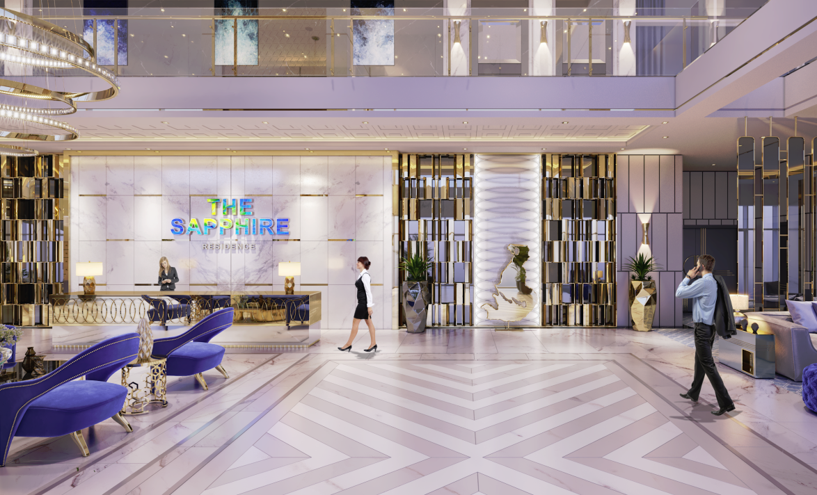 The Sapphire Residence sở hữu hệ thống tiện ích nội khu và dịch vụ đồng bộ, khép kín đáp ứng mọi nhu cầu của từng thành viên trong gia đình. Bước chân vào tòa nhà bạn sẽ thấy choáng ngợp bởi sảnh lounge đón khách sang trọng không thua kém bất kỳ một khách sạn hạng sang. Bên cạnh đó, hệ thống 10 thang máy tiêu chuẩn quốc tế được bố trí thành các cụm thang hợp lý sẽ giúp việc di chuyển của cư dân luôn thuận tiện, dễ dàng.