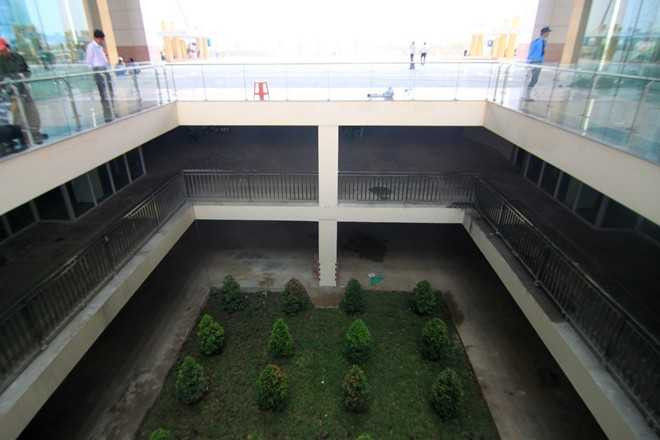 Giữa sân, một sân khấu lớn đang được thiết kế chuẩn bị cho buổi lễ khai trương tòa nhà vào ngày 20/2. Công trình đượckhởi công từ tháng 11/2010 theo hình thức BT (xây dựng - chuyển giao). Tổng mức đầu tư tòa tháp hơn 1.414 tỷ đồng. |