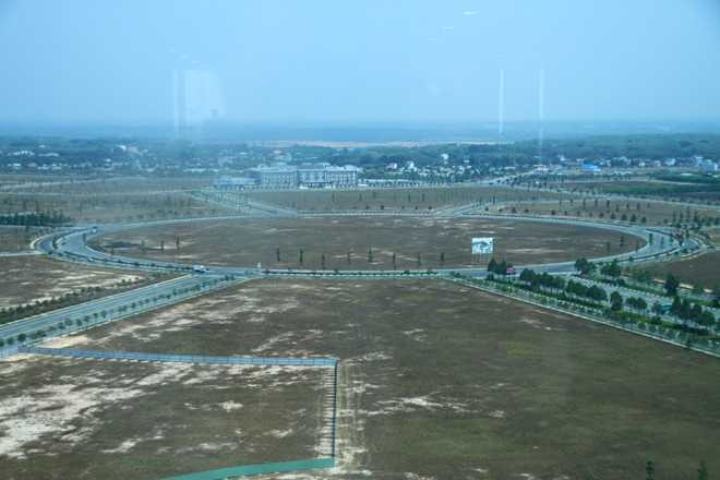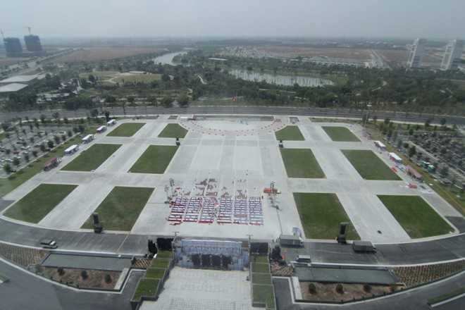 Lối vào khu trung tâm hành chính là những con đường 8 làn xe. |