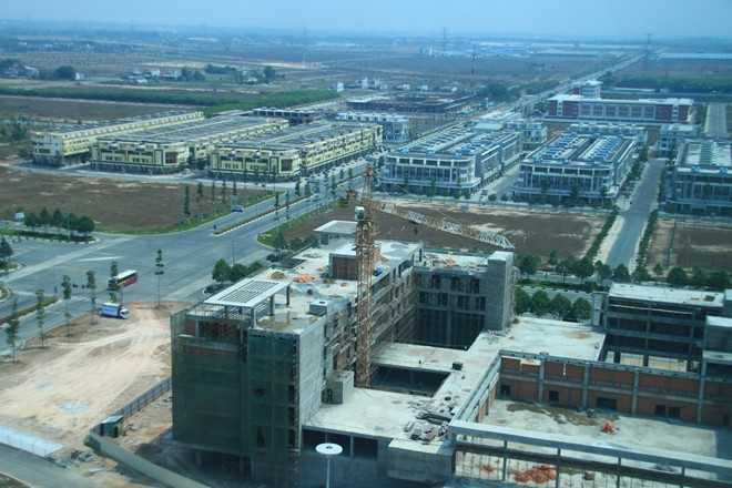 Cạnh đó là khu vực dân cư, với các dãy chung cư đang được xây dựng. |