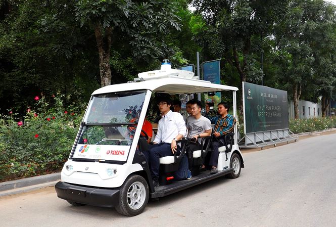 Mẫu xe điện với sự hợp tác của Yamaha và FPT Software đã lăn bánh thử nghiệm trong khu đô thị Ecopark (Hưng Yên) mà không cần người lái.