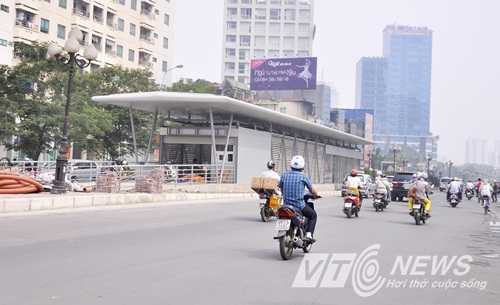 | Trong khi đó, một nhà chờ khác vừa mới bắt đầu thi công trên đường Láng Hạ |