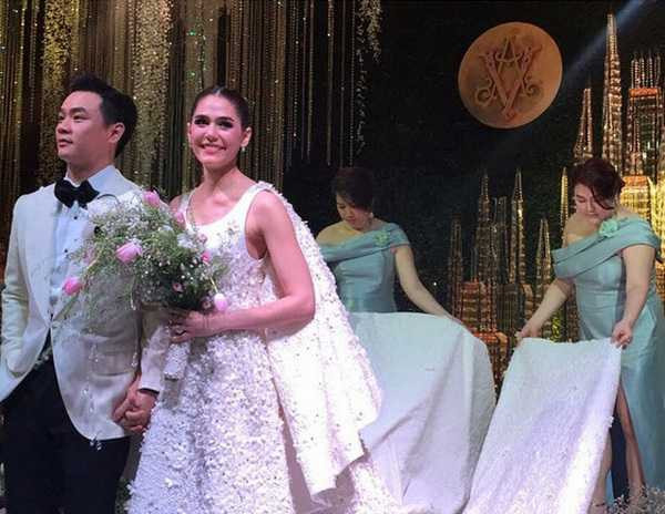 Chiếc váy cưới cầu kỳ, tinh tế của người đẹp này trị giá gần 2 tỷ (VND).