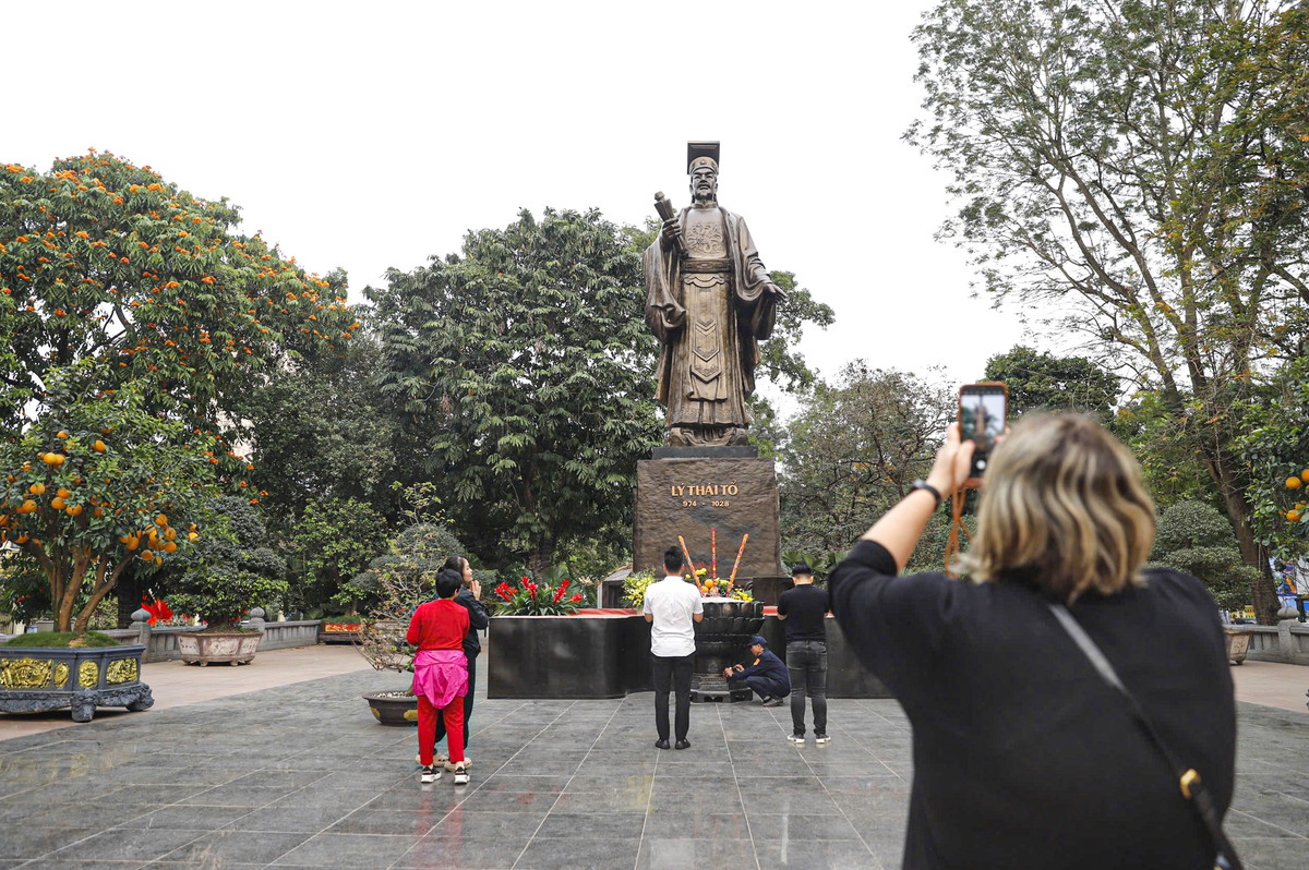 Tượng đài vua Lý được khởi công ngày 17/8/2004, khánh thành ngày 7/10/2004, do nhà điêu khắc Vi Thị Hoa sáng tác. Tượng được làm bằng đồng nguyên chất, đúc liền khối, nặng 32 tấn (tượng 12 tấn, bệ 20 tấn), cao 10,1m (tượng cao 6,8m, bệ cao 3,3m), hướng nhìn ra hồ Hoàn Kiếm.