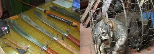 Trong quá trình đi trộm chó, ngoài mang theo 'công cụ hành nghề' thòng lọng, súng bắn điện..., các đối tượng trộm chó còn mang cả dao, phớ, rìu… để chống trả