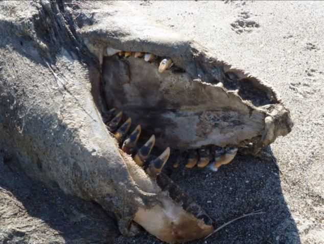 | Cận cảnh hàm răng sắc nhọn lởm chởm của xác chết thủy quái |