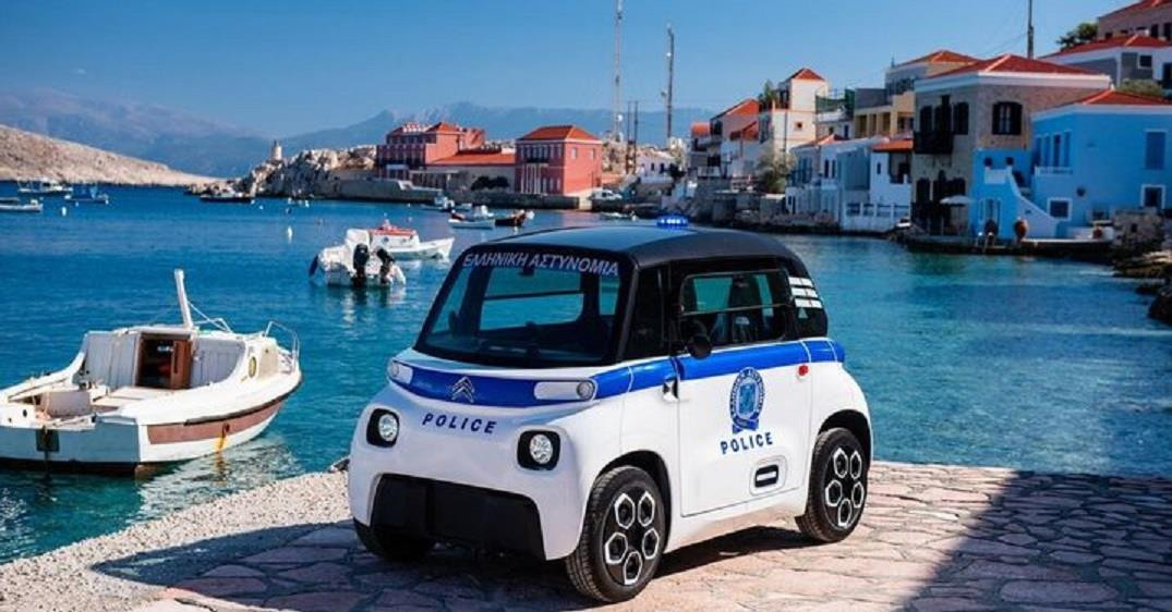 Xe điện mini Ami mang logo của cảnh sát Hy Lạp. (Ảnh: Citroen)