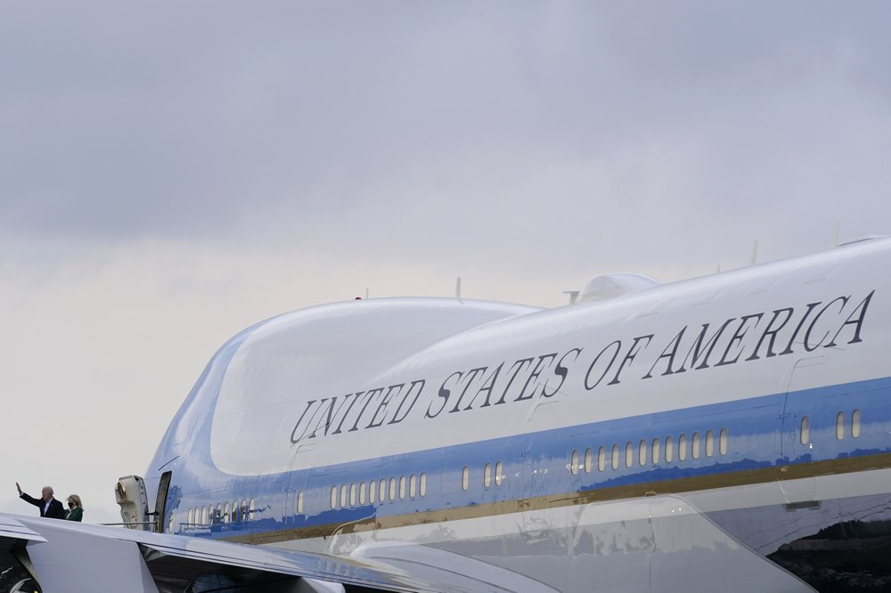 Tổng thống Mỹ Joe Biden và phu nhân Jill Biden trên máy bay Không lực Một ngày 26/2/2021. (Ảnh: AP)