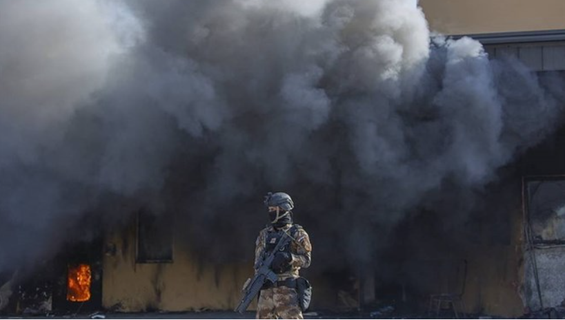 Khói đen dày đặc từ đám cháy gần một căn cứ Mỹ ở Iraq. (Ảnh: AP)