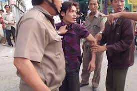 Chẳng những không nghe lời, 3 đối tượng Cường, Quy, Phúc liền dùng tay chân, kệ bằng sắt và gạch đá ném và xông vào đánh 2 chiến sỹ công an bị thương rồi bỏ trốn.