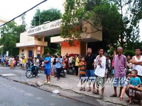 | Người dân hiếu kỳ đứng xem kín cả đường đi |
