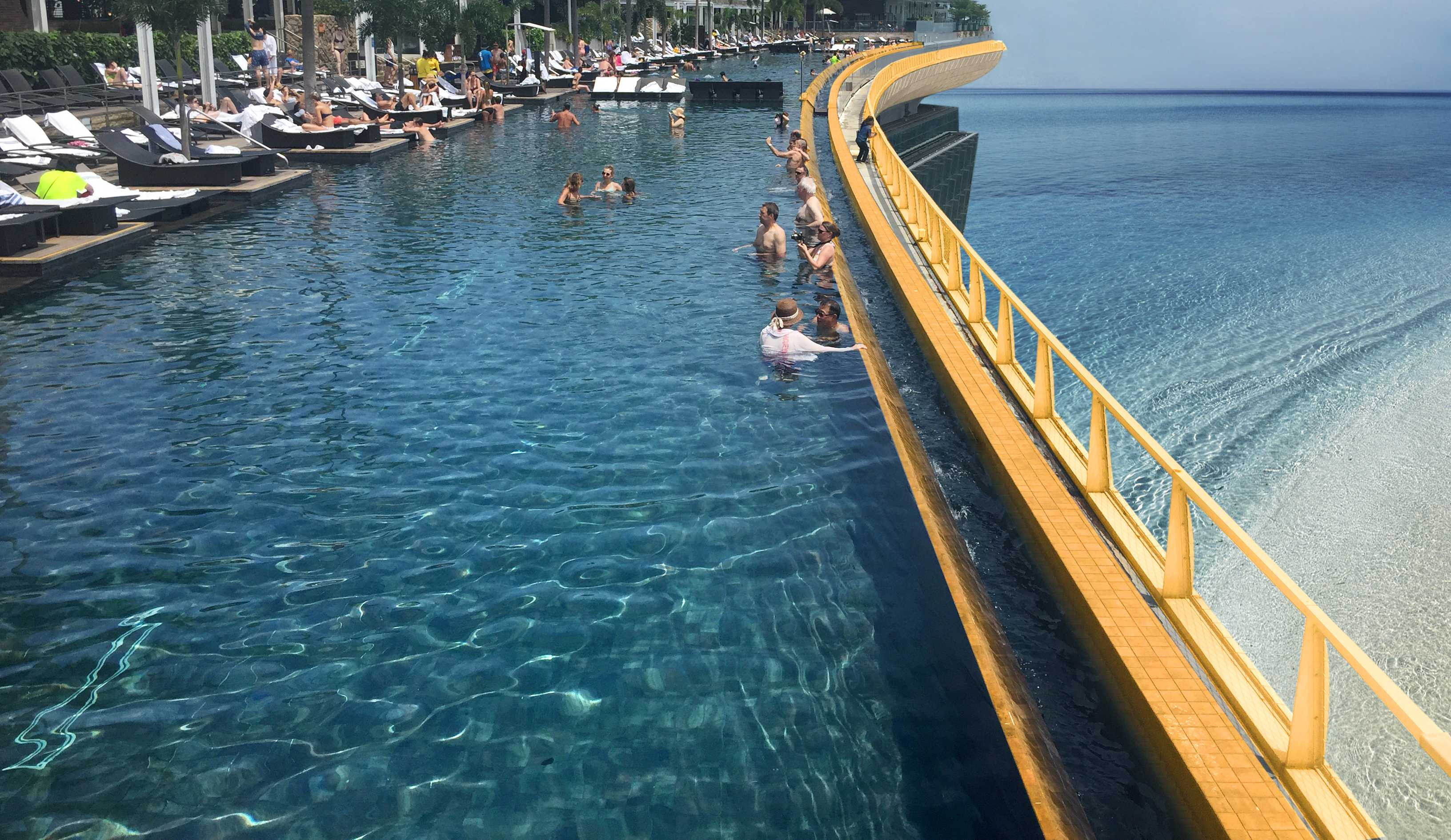 Hoà Bình Green Đà Nẵng dành toàn bộ tầng thượng của 2 toà tháp làm bể bơi vô cực được dát vàng 24k lớn nhất và cao nhất thế giới. Sẽ không có chủ nhân dự án căn hộ nghỉ dưỡng nào ở Đà Nẵng được hưởng “đặc quyền bơi lội giữa không trung” mà lại được ngắm nhìn cả vịnh Đà Nẵng mênh mông, bán đảo Sơn Trà xanh ngắt và dòng sông Hàn thơ mộng như dải lụa nằm vắt ngang thành phố du lịch phát triển năng động nhất miền Trung.