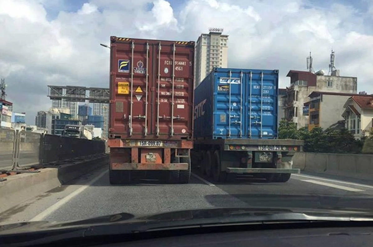 Hôm 26/8, đoạn video ghi lại cảnh 2 xe container dàn hàng ngang trên đường Vành đai 3 (Hà Nội), không cho xe khác vượt qua khiến nhiều người bức xúc. 2 chiếc xe di chuyển song song với tốc độ chậm dù phía trước không có vật cản, khiến những xe di chuyển phía sau cũng phải lưu thông chậm theo.