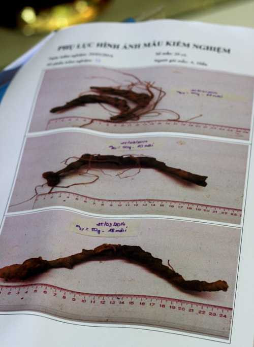 | Các củ sâm đều được anh Tuyền chụp ảnh và gửi đi xét nghiệm tại Viện Dược liệu Việt Nam |