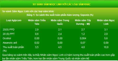| Bảng xét nghiệm thể hiện sâm Ngọc Linh quý nhất thế giới |