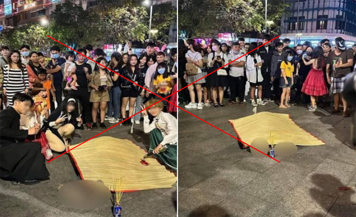 Đúng ngày Halloween 2022, nhiều cư dân mạng Việt Nam ngao ngán chia sẻ hình ảnh một trò chơi “lễ hội ma” hết sức phản cảm: Mấy thanh niên nam nữ trong tạo hình hóa trang tươi cười chụp ảnh “tự sướng” trước một người nằm đắp chiếu, một đầu là “bát hương”, gợi liên tưởng đến các trường hợp tử vong vì tai nạn trên phố - nỗi ám ảnh kinh hoàng đối với những người từng chứng kiến cảnh này.