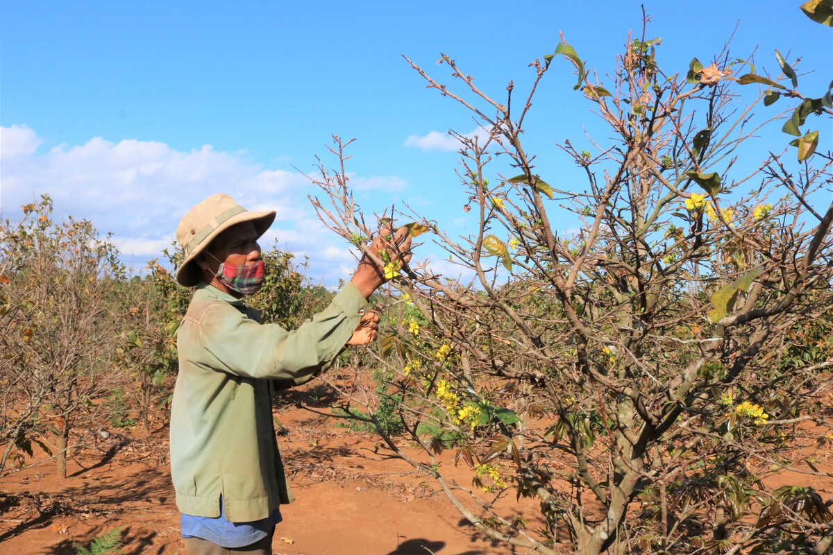 Bên cạnh hơn 30 cây mai được trồng làm hàng rào quanh nhà ở, ông Luih còn dành hơn 5.000m2 đất để trồng mai rừng. Hiện khu rẫy này có khoảng 1.000 cây mai rừng với đủ loại kích cỡ, tuổi thọ 15-30 năm. Tất cả những cây mai trong rẫy được ông để phát triển tự nhiên như ở rừng.