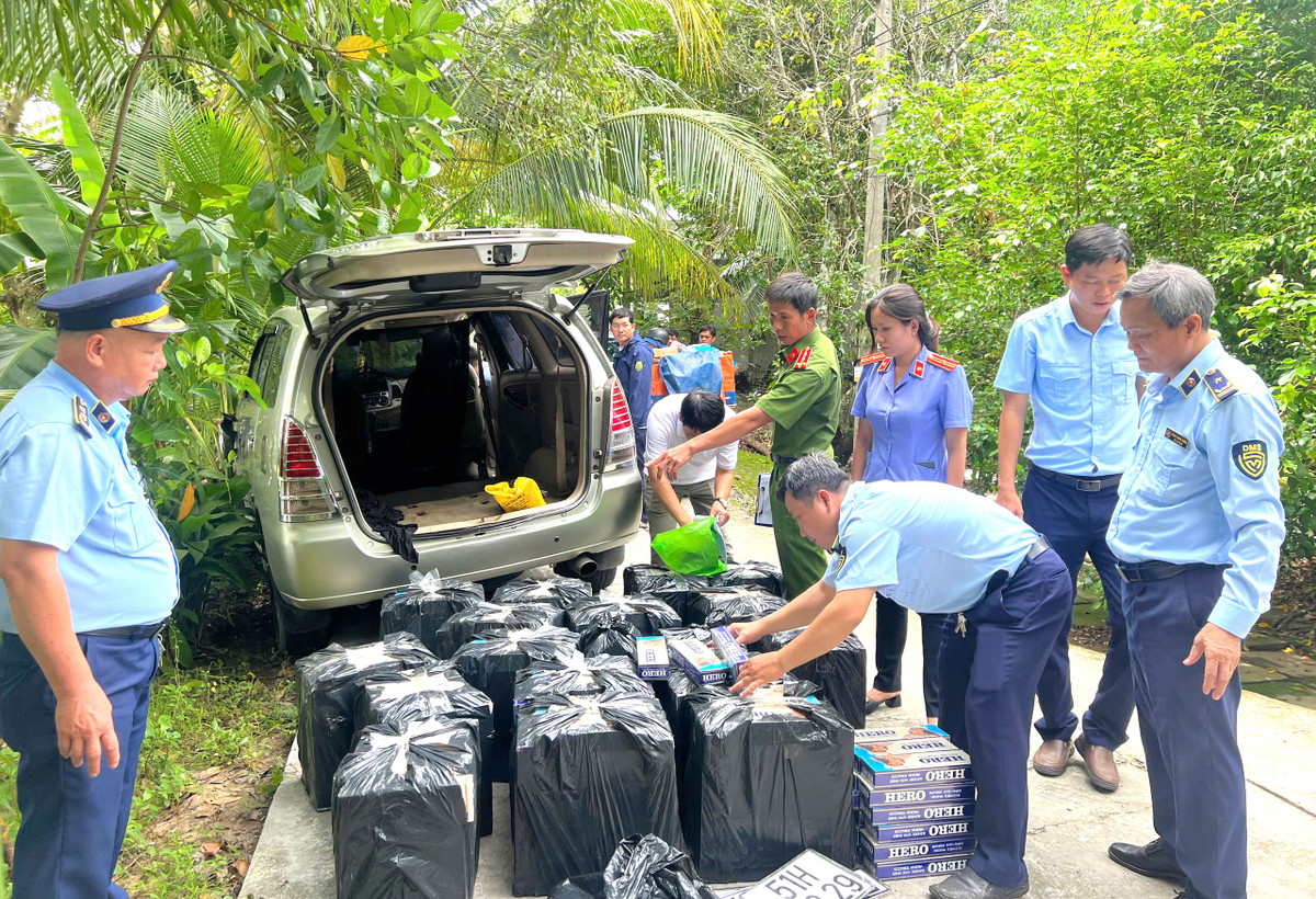 Lực lượng chức năng kiểm tra xe ô tô chở thuốc lá lậu