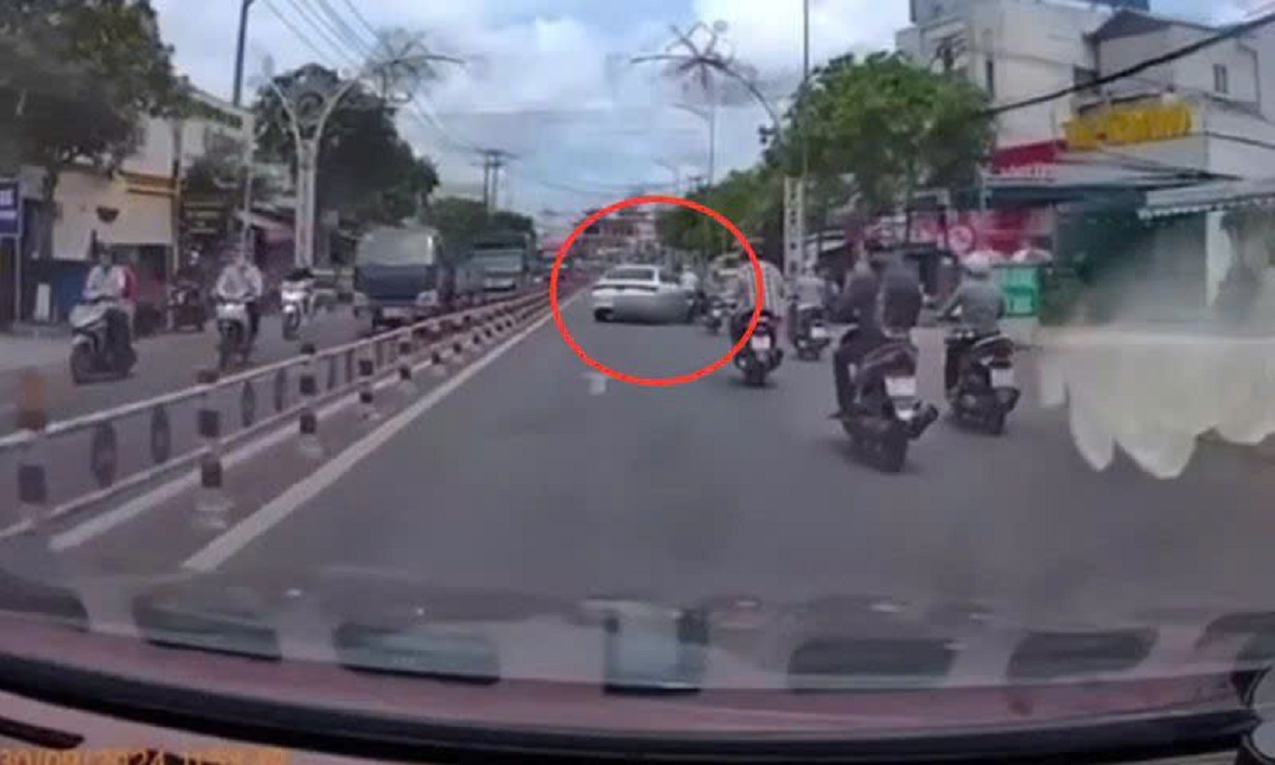 Trong khi đó, chiếc ô tô con cố tình ép ngã xe hai bánh đã phóng đi. Vụ việc làm cho nhiều người xem được clip bức xúc trước hành vi ngang nhiên của chiếc ô tô trắng cố tình gây tai nạn mà vẫn bỏ đi.
