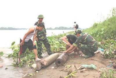Nhận được tin báo của nhân dân về việc phát hiện quả bom thứ nhất nằm ven sông Hậu, lực lượng công binh đã xuống hiện trường khoanh vùng, dò tìm và phát hiện quả bom thứ hai còn nằm dưới lòng sông.