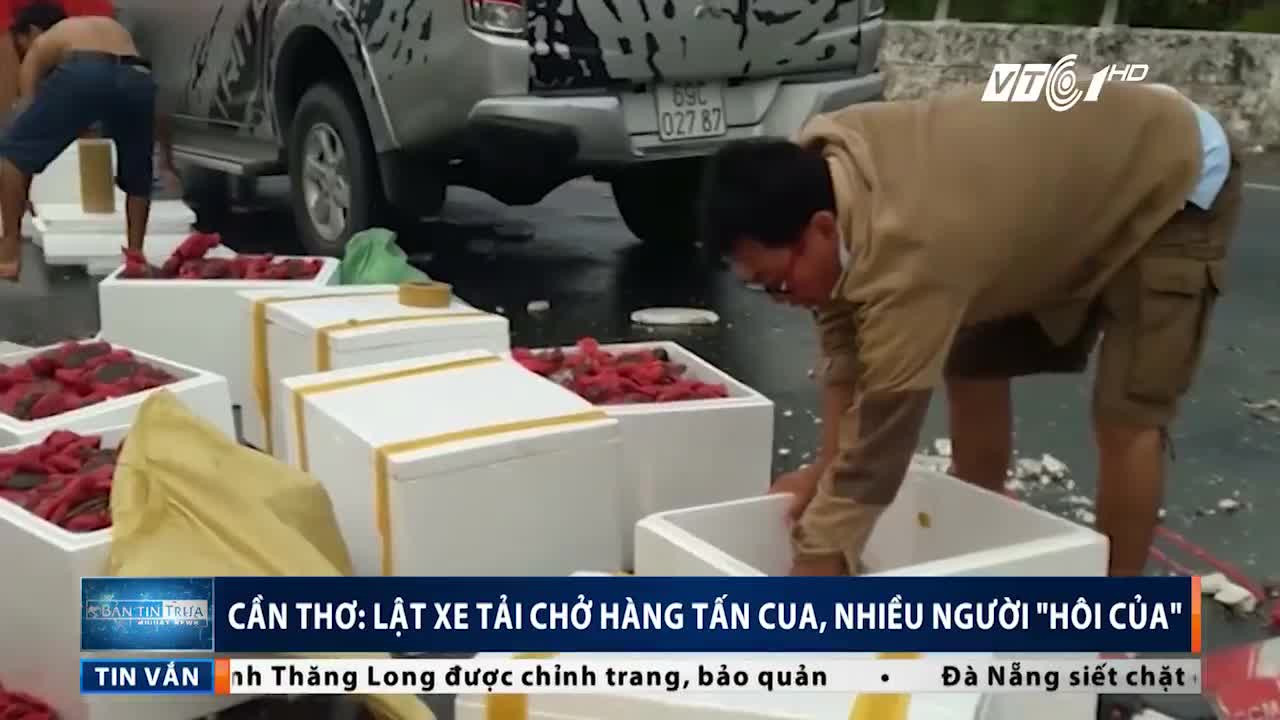 Hôm 17/1, trên địa bàn thuộc Q. Cái Răng, TP. Cần Thơ xảy ra vụ tai nạn, xe tải làm đổ hàng chục tấn cua trên đường, người dân đến 'hôi của'.