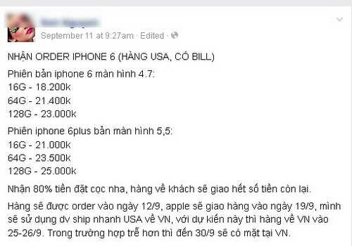 Ngay từ trước khi iPhone 6 ra mắt, dân buôn điện thoại Việt đã liên tục đưa ra những lời mời gọi nhận đặt hàng trước với nhiều mức giá khác nhau. Sau thời điểm Apple công bố chiếc điện thoại mới, dịch vụ này bung ra với số lượng dày đặc hơn rất nhiều.