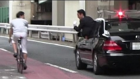 Khi đoàn xe hộ tống Thủ tướng Nhật Bản Shinzo Abe đi qua một con phố, các cận vệ nhoài người ra khỏi xe, cúi đầu xin lỗi nam thanh niên đi xe đạp vì những bất tiện do đoàn xe gây ra, đồng thời ra hiệu cho anh ta đi sát vào lề, nhường đường cho đoàn hộ tống.