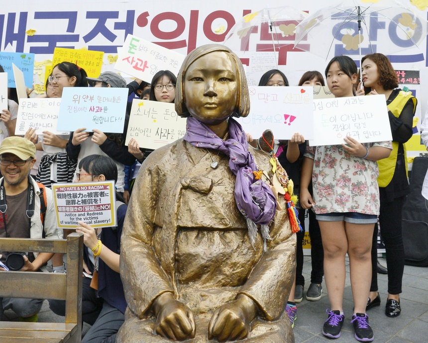 Vấn đề nô lệ tình dục Hàn Quốc trong Thế chiến 2 từ lâu trở thành nguồn gốc căng thẳng giữa Nhật Bản và Hàn Quốc. Vào tháng 12/2015, hai nước đạt được thỏa thuận để giải quyết tranh chấp "lần cuối cùng và không thể đảo ngược".