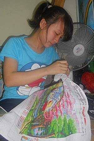 | Lan Anh đang thêu tranh cho kịp hàng tết |