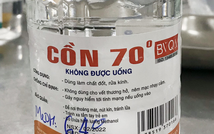 Trung tâm xét nghiệm chai cồn do gia đình mang tới có nồng độ cồn công nghiệp methanol là 56%. TS.BS Nguyễn Trung Nguyên, Giám đốc Trung tâm Chống độc, Bệnh viện Bạch Mai cho biết, loại cồn sát trùng thực sự chúng ta cần dùng phổ biến là ethanol, còn cồn công nghiệp methanol thì lại là hóa chất độc hại không được dùng làm sát trùng.
