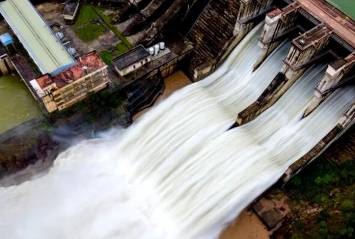 Hồ chứa thuỷ điện Hương Điền điều tiết nước về hạ du. (Ảnh: Trần Thiên).