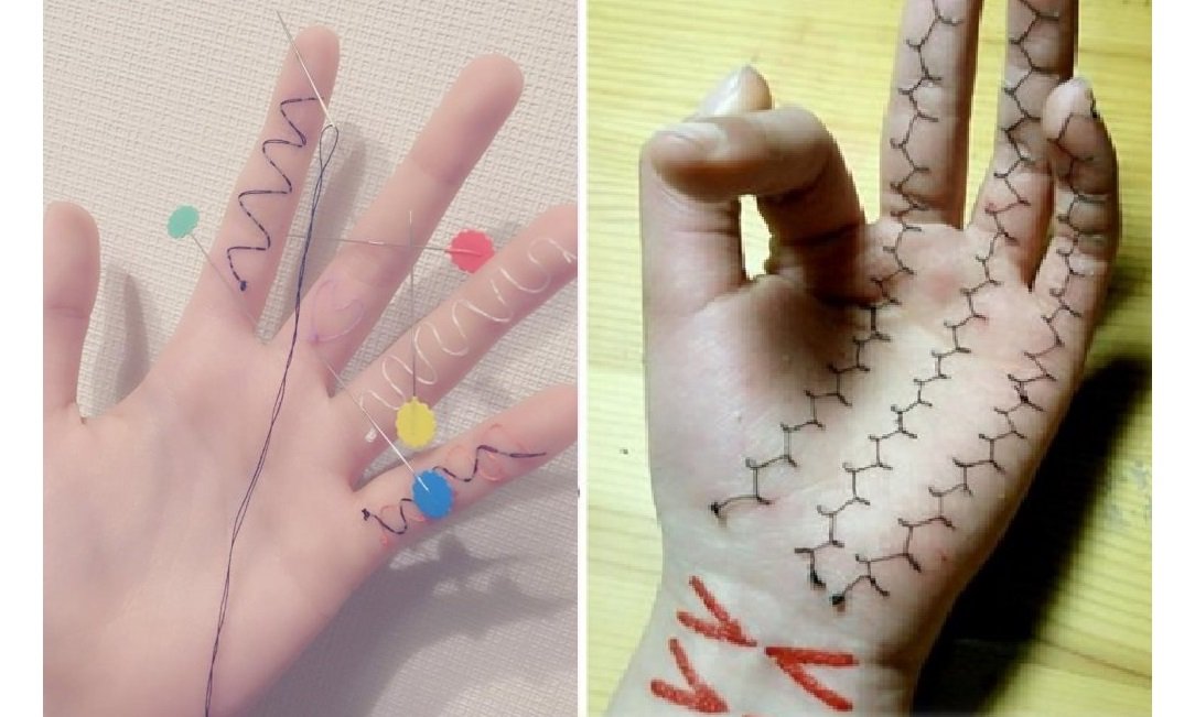 Không chỉ thêu lên tay, nhưng người tham gia trào lưu này còn thêu chỉ màu lên môi hay chân. Sau khi hoàn thành "tác phẩm", họ còn chụp ảnh và khoe trên mạng xã hội cho bạn bè.