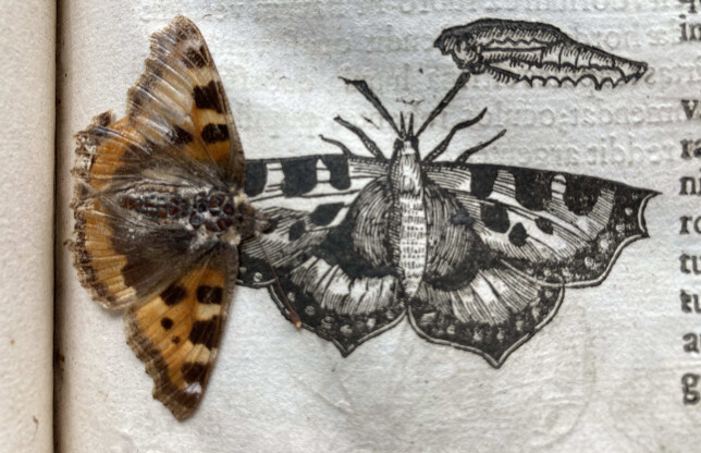 Mẫu vật bảo quản hoàn hảo được tìm thấy bên trong bản sao của cuốn sách đầu tiên về côn trùng ở Anh mang tên Theatre of Insects, xuất bản năm 1634.