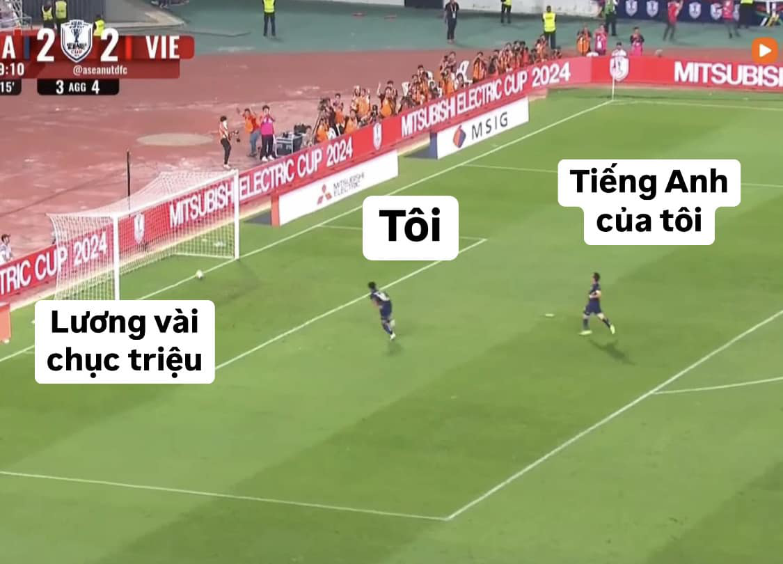 Cư dân mạng liền lấy hình ảnh đó ra chế meme mới với nội dung thể hiện sự bất lực khi theo đuổi một điều gì đó vốn không thuộc về mình, khiến người xem thích thú bình luận: "Cười rơi nước mắt, đúng là gặp đúng người nhưng sai thời điểm thì cũng không thể đến được với nhau"; "Nếu có ai theo đuổi tôi như cách cầu thủ Thái Lan theo đuổi, thì chắc chắn tôi sẽ đổ ngay. Mỗi tội 30 mùa khoai sọ mà vẫn chưa lọ mọ cùng ai".